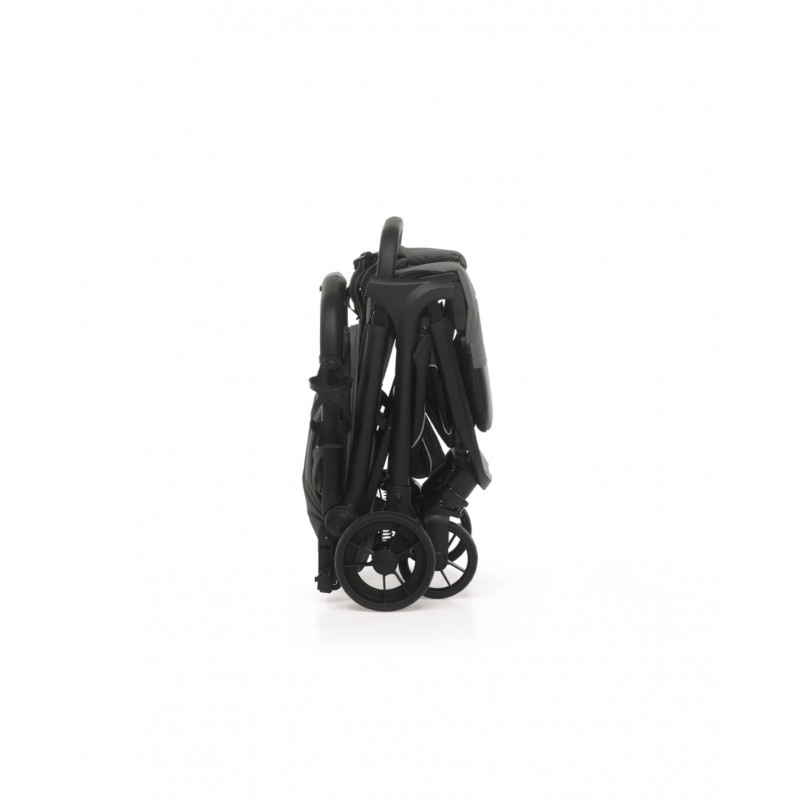 La capottina estensibile ha tessuto con protezione solare UPF50+ e le cerniere sono resistenti all’acqua mentre il maniglione, in tessuto effetto pelle microforata, ha in dotazione un comodo porta biberon.